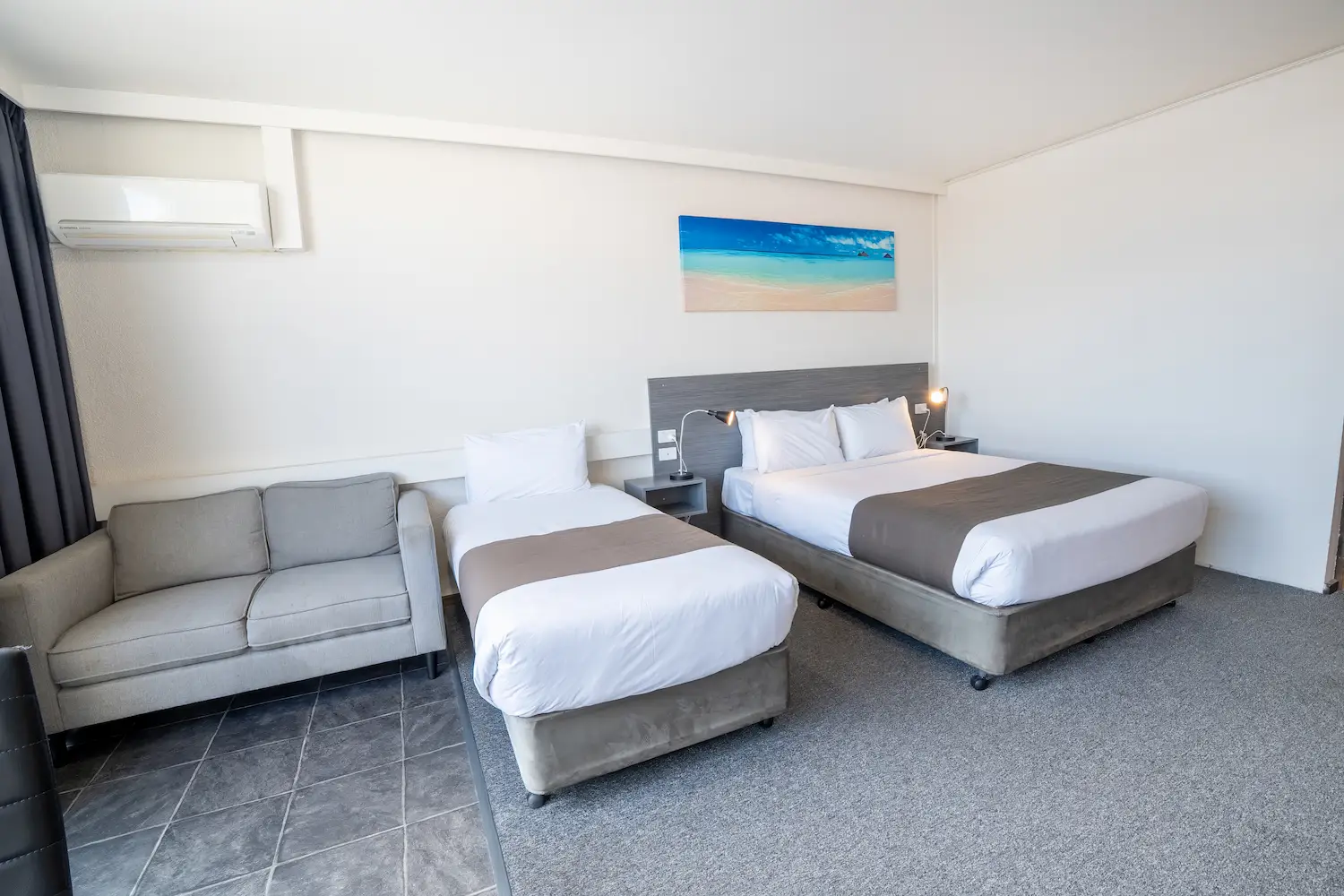This room is one of our upstairs family rooms with a magnificent view overlooking Georges Bay. These family rooms have