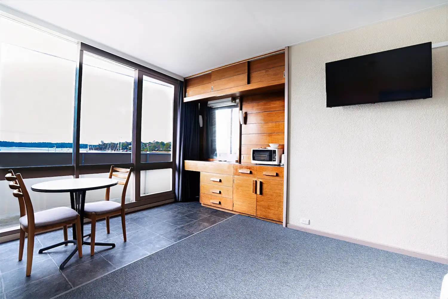 Choose from a range of well-appointed rooms — many with bay outlooks or a private balcony — set up for easy, comfortable stays.In every room: free Wi-Fi, Smart TV, bar fridge, microwave, tea and coffee, iron and ironing board, private bathroom; most with split-system heating and cooling.