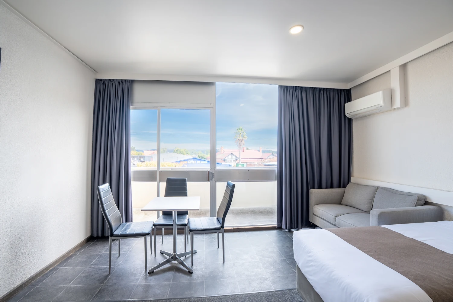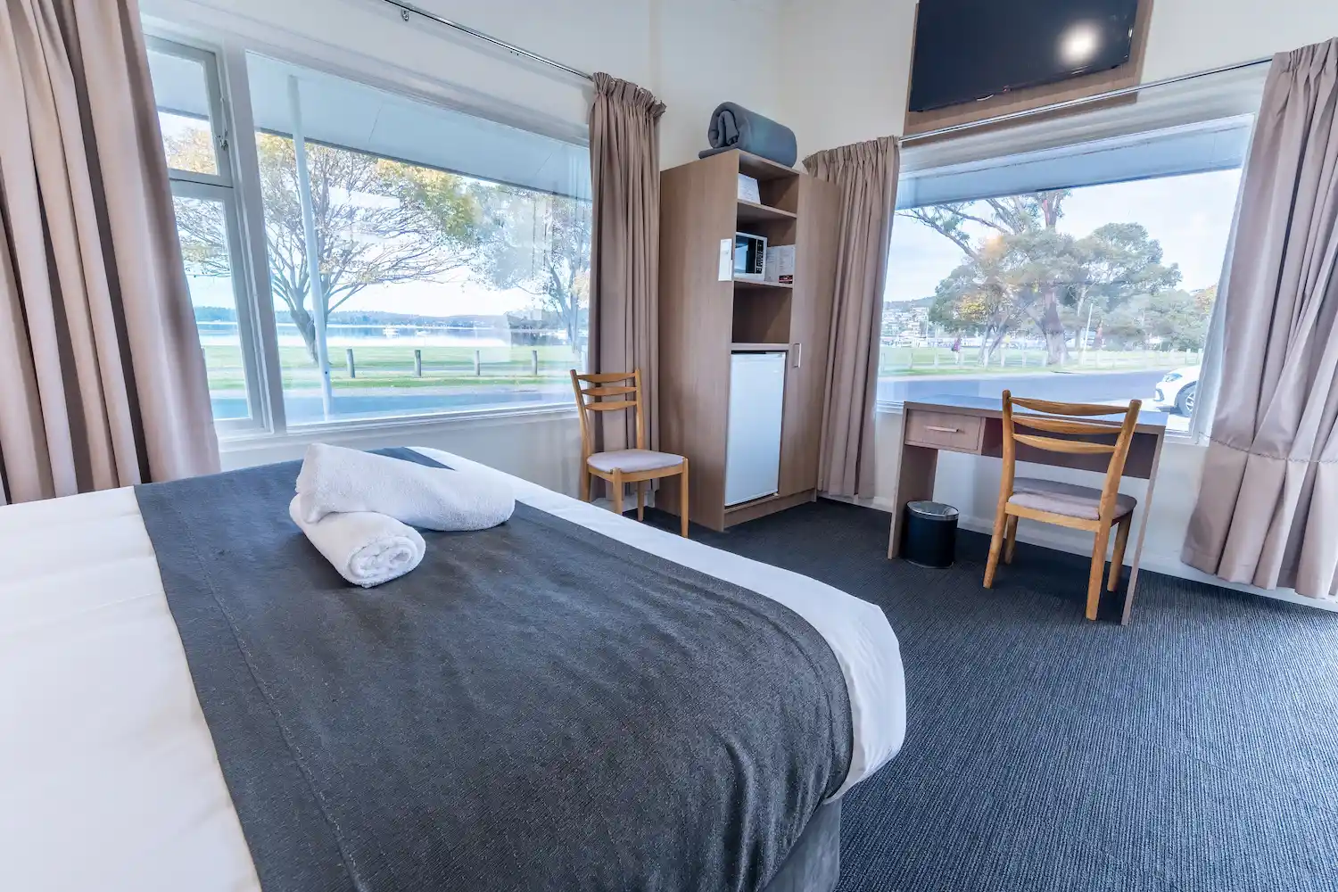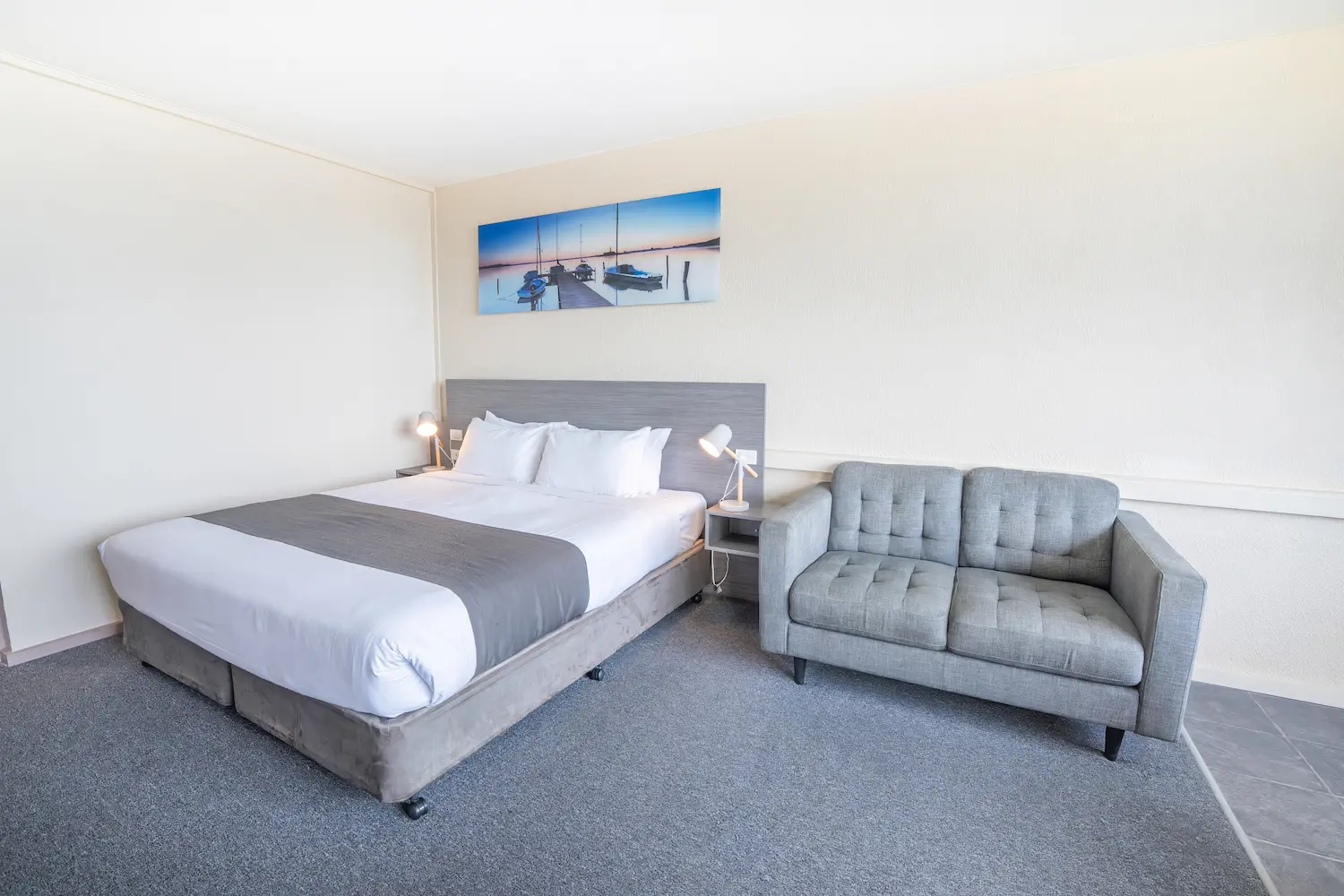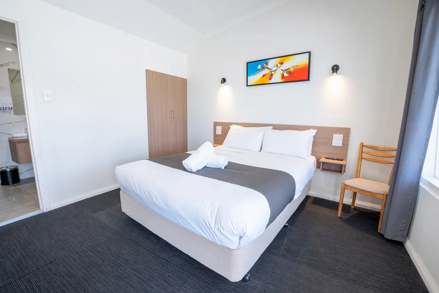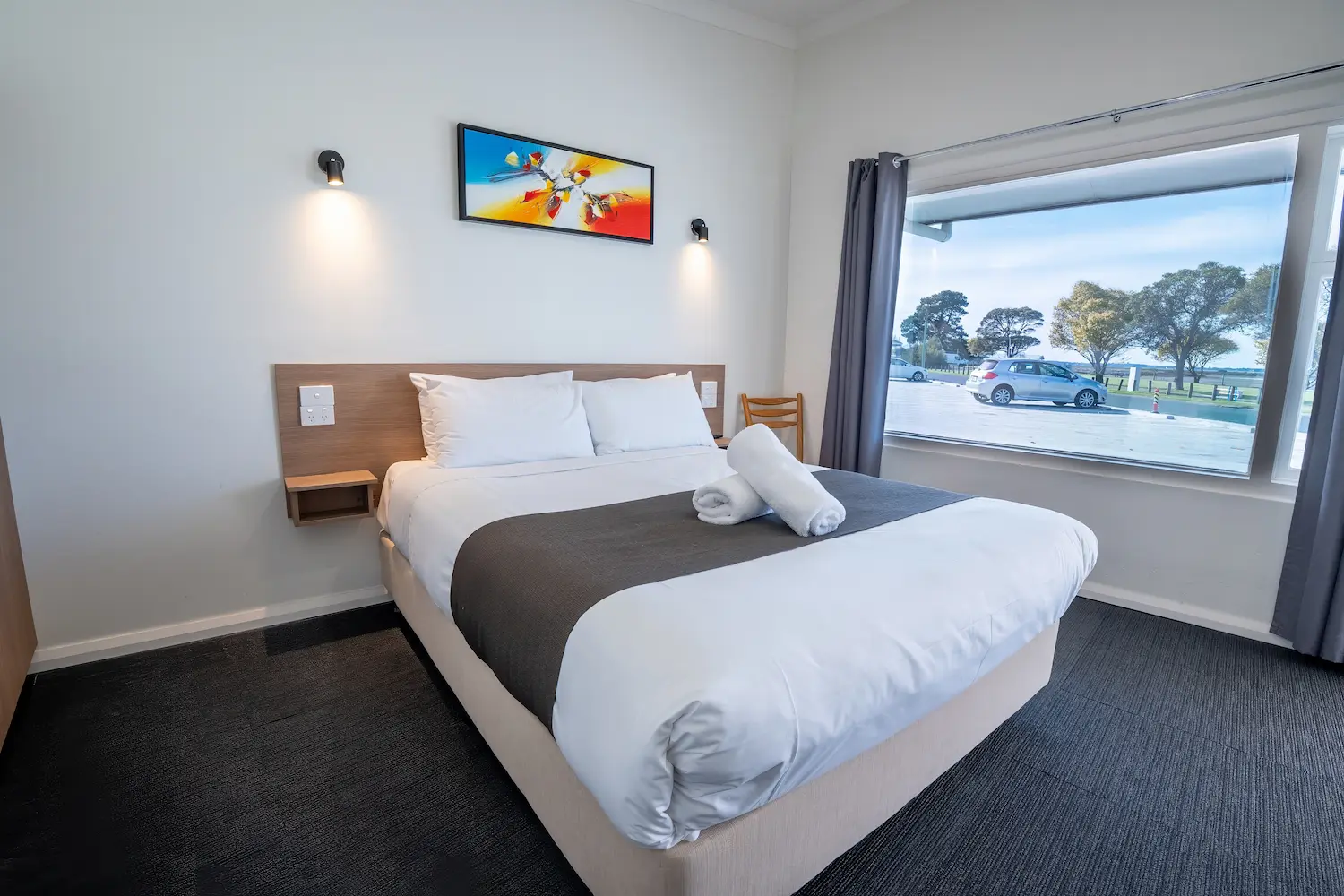 Stylish queen room with bay views — perfect for business or a short break. (No balcony)