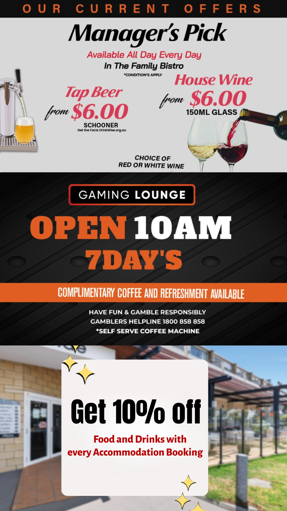 the Bayside Hotel provides a relaxed atmosphere with a great range of facilities with comfortable and affordable accommodation.